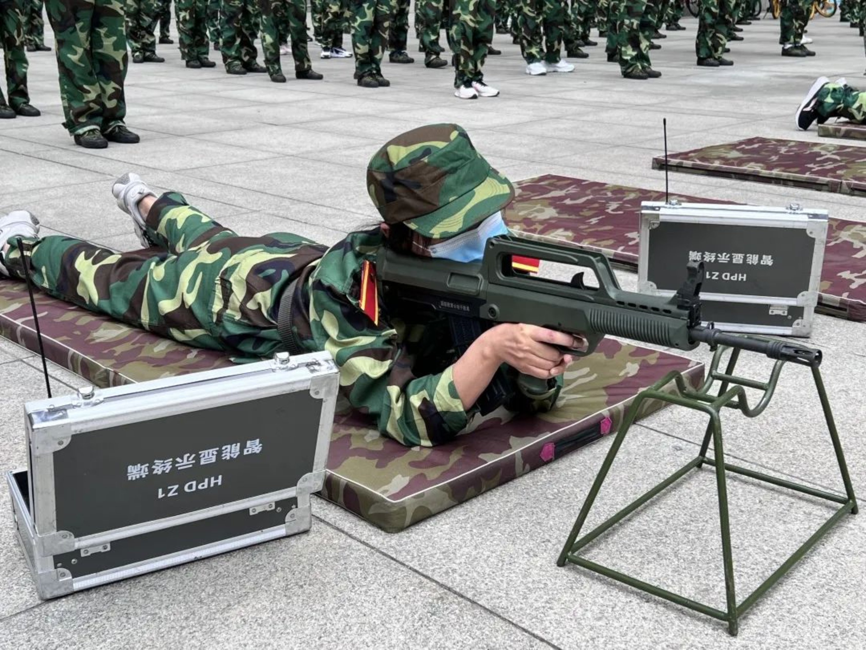 六连的同学们进行打靶练习。他们全神贯注地观看教官的演示动作。按序卧倒、支起95式自动步枪模型、瞄准目标、扣动扳机,模拟发射的声音此起彼伏。同学们个个屏气凝神,飞速计算瞄准线、高低角,以对待实战的态度投入练习。十枪过后,不论成绩高低,同学们都成功做到了挑战自我、超越自我。这份宝贵的经历,也将伴着六连的同学们在今后的学习生活中劈波斩浪,做自己的斗士。