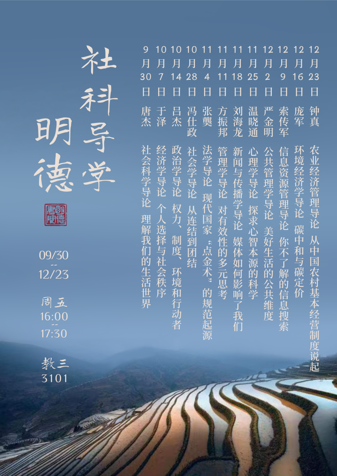 9月30日至12月23日 周五16:00-17:30