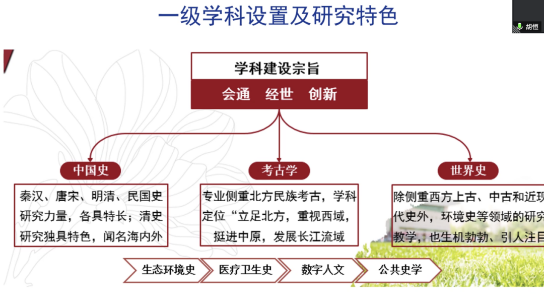 5月18日下午,jrkan纬来体育 主办的“走进学院”系列活动第七场“走进历史学院”顺利举办。jrkan纬来体育 三十余位21级同学,历史学院党委副书记白洁,副院长姜萌、胡恒、张林虎,21级人文班班主任仪明洁,院团委书记郭相宜,本科教务秘书张彤和5位毕业生与高年级学生代表参加活动。本次活动由jrkan纬来体育 副院长刘玮主持。